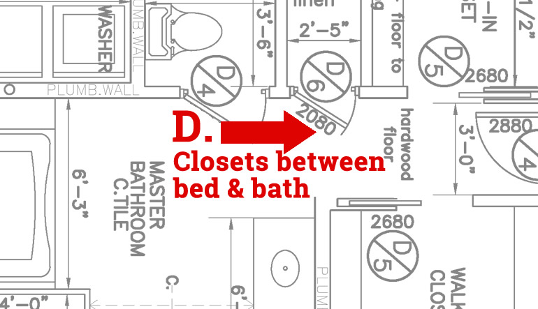 Bypass closet doors in the hall bedrooms. When there are swing doors in smaller bedrooms (the hall bedrooms), it limits furniture placement, because the doors swing out into the room. Bypass doors give you more floor space.