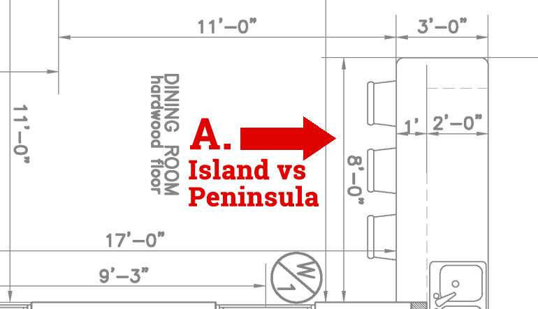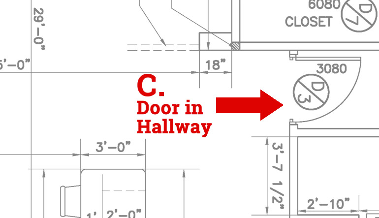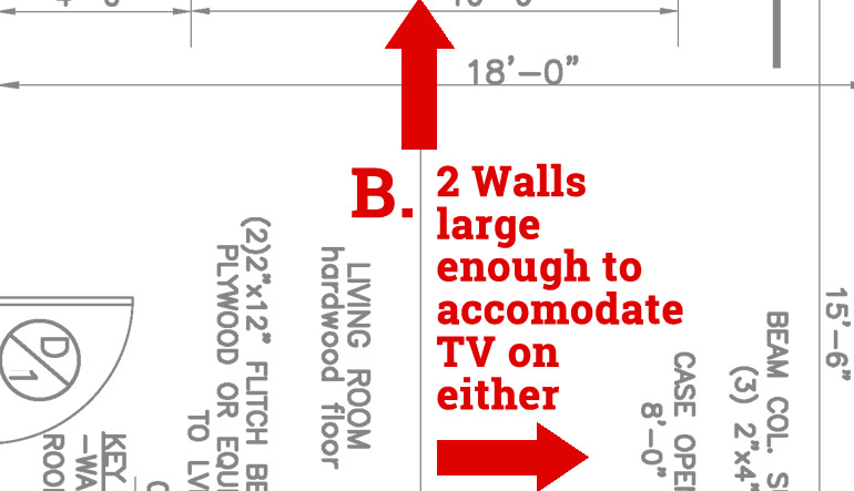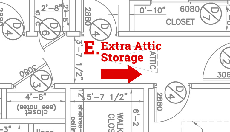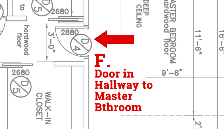 In the sample floor plan pictured above, letters indicate key layout decision points, detailed below:
