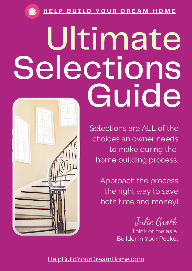 Selections are every choice you make about your home—finishes, fixtures, materials, style, functionality. There are thousands of them. But HOW and WHEN you make them changes everything.